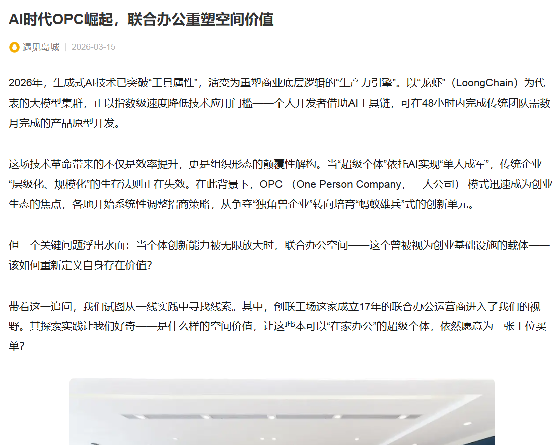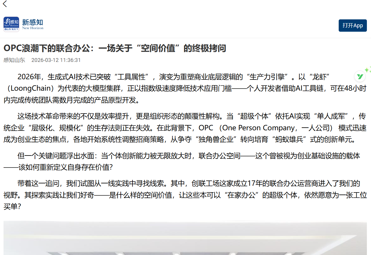 媒体报道 | OPC浪潮下的联合办公:一场关于“空间价值”的终极拷问