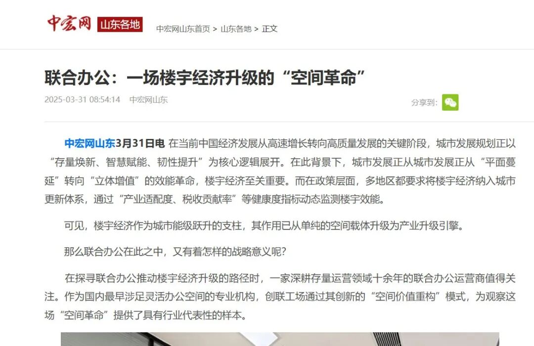 媒体报道 | 联合办公:一场楼宇经济升级的“空间革命